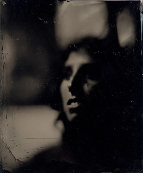 For this work I intensively explore and experiment with one of the oldest of photographic processes, wetplate collodion. Using chemistry hand-mixed from traditional formulas and self-built cameras and equipment, I focus on the portrait. The resulting works are all photographed directly onto sheets of glass (ambrotypes), metal (tintypes), and plastic (plexi-types). These constructed pieces, and their use of layering, space, movement and distance also play with the notion of what is a "photograph".
